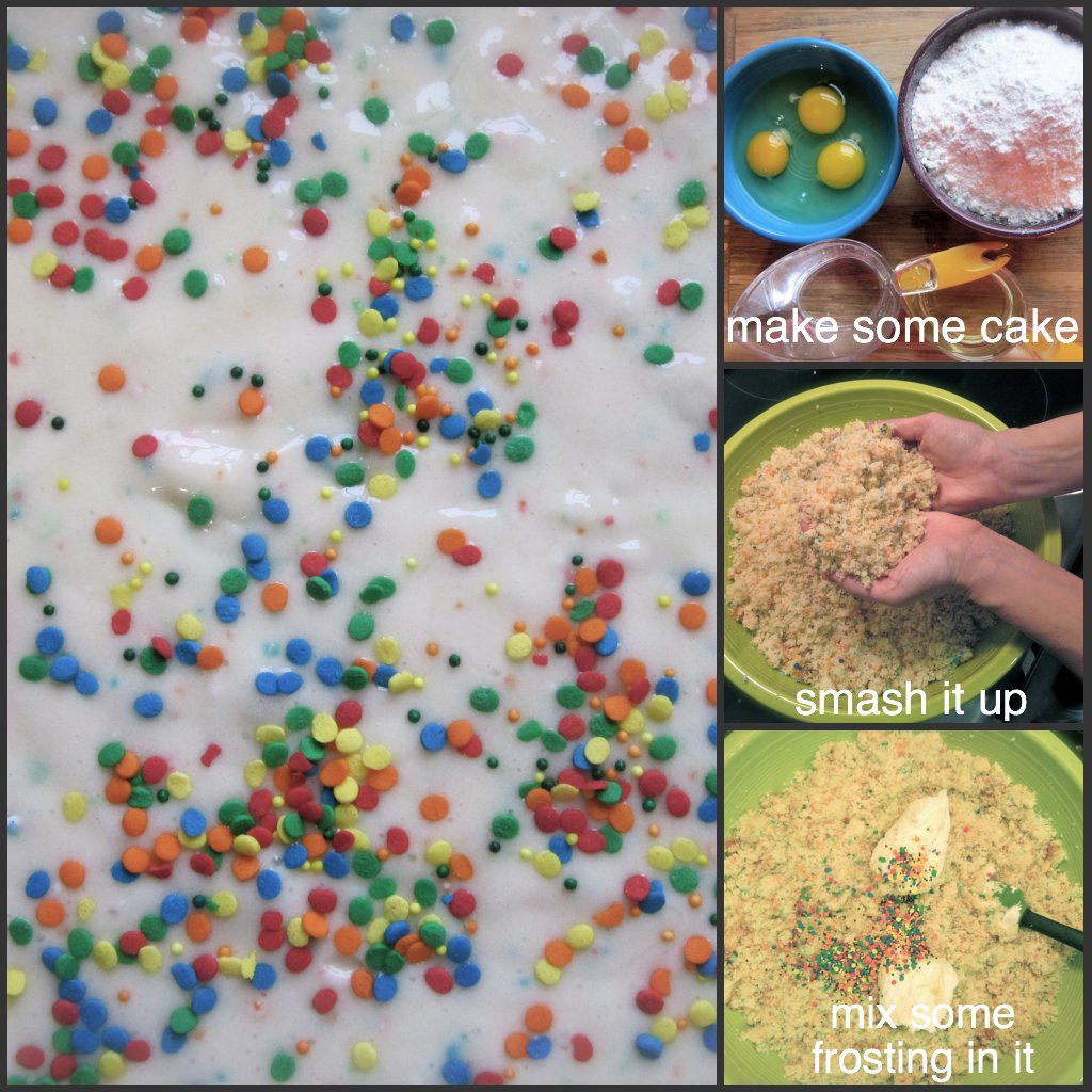 Jim gets the birthday cake flavored cake pops at Starbucks frequently and I get to hear about how amazing they are for the following 3 hours- every time he finds a tiny little leftover piece in between his molars...so I told him I'd try to make them. I made lemon, confetti cake and devils food with sea salt!